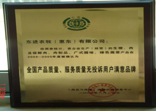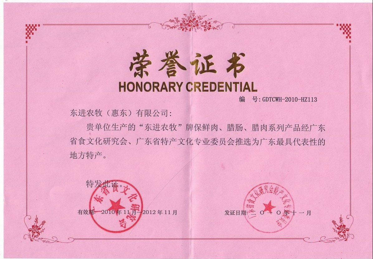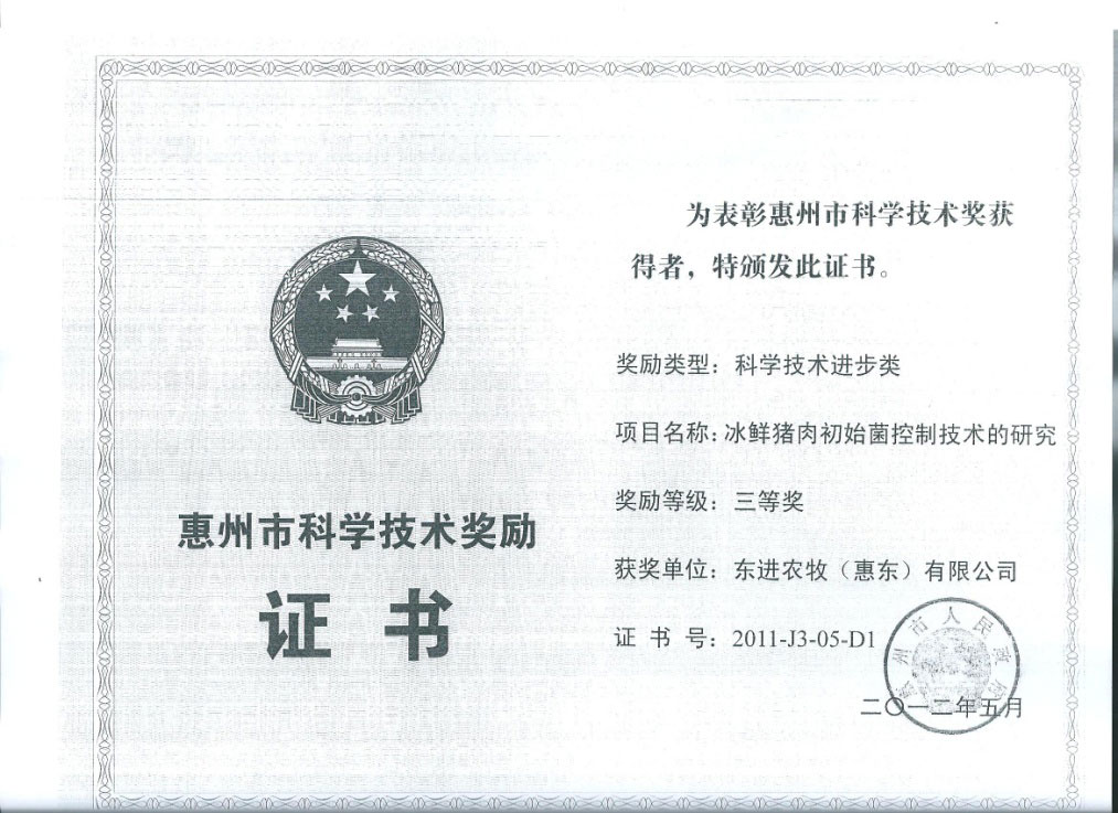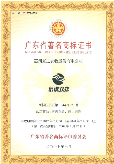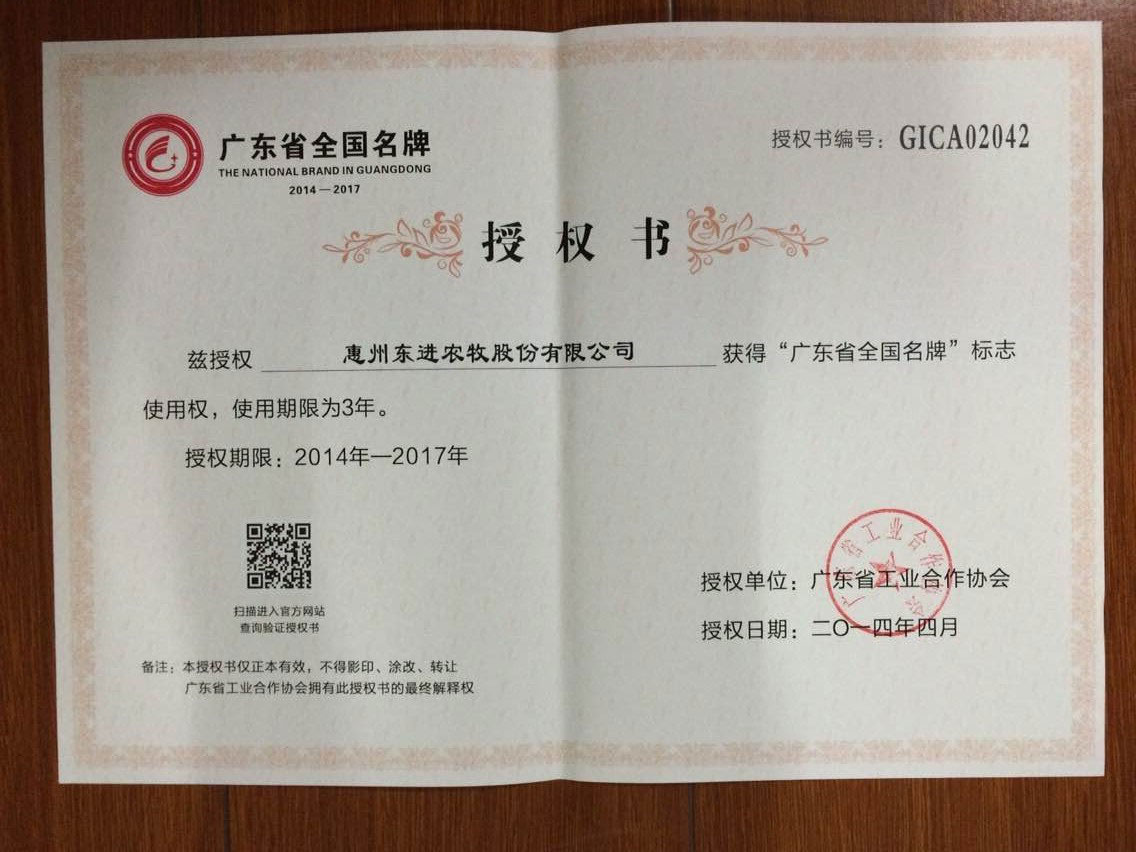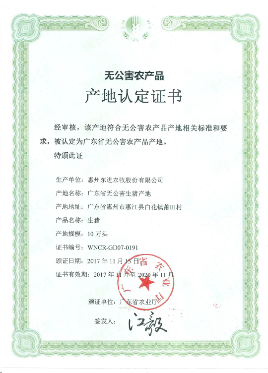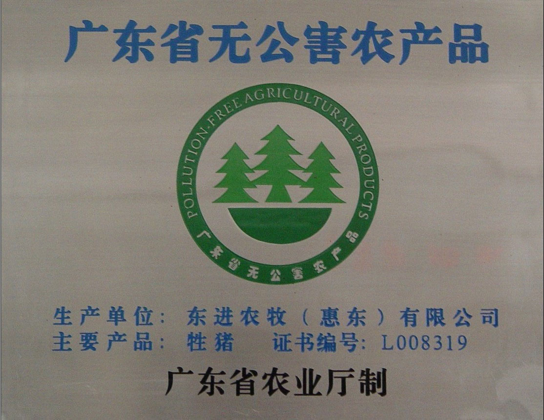 - 广东出入境检验检疫局批准注册为“供港澳活猪饲养场”注册编号为:GDS182