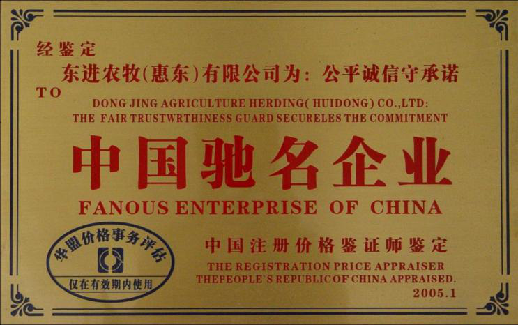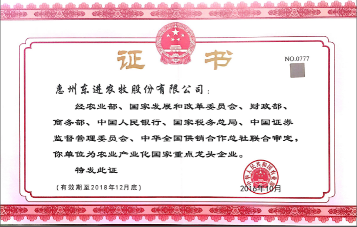 - 被国家农业等八部委评委国家级农业龙头企业(编号:NO.0501)